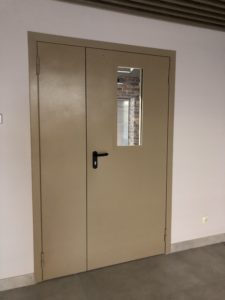 В дверях можно использовать стекло, но его площадь не должна превышать 25%. Стекло также должно быть уплотнено по периметру. Кроме того, такие двери оснащаются подшипниковыми петлями, замками, ручками с антипаникой и доводчиками. Металл покрывается высококачественной краской.