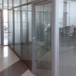 Вариант перегородки с двойным остеклением позволяет сэкономить на стоимости самого заполнения. В результате пространство между рамами может быть эффективно использовано, например, установить следующие типы жалюзей:
