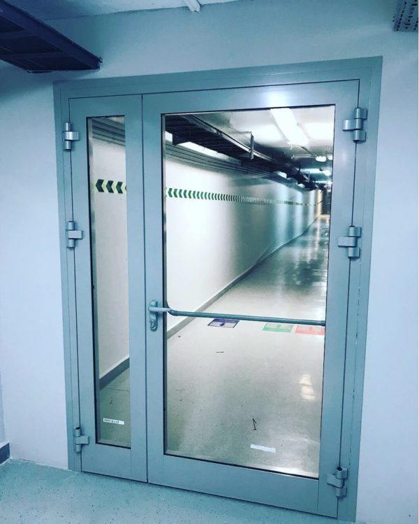 От качества заполнителя зависит, насколько эффективно преграда будет препятствовать распространению высоких температур. Материал должен быть негорючим и стойким к температурным воздействиям. В комплектацию противопожарной алюминиевой двери также входят уплотнители, ручки, замки и иные элементы фурнитуры. Дополнительные фурнитурные детали: доводчики, отбойные пластины, пороги разных типов.