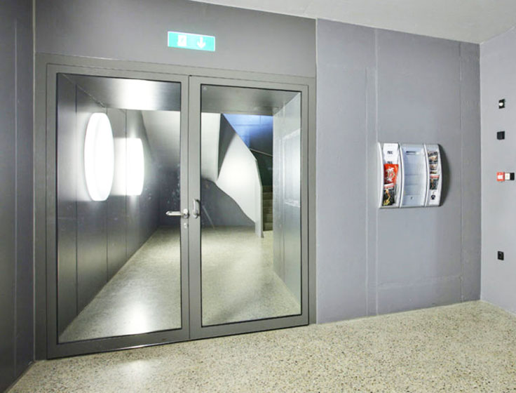 От качества заполнителя зависит, насколько эффективно преграда будет препятствовать распространению высоких температур. Материал должен быть негорючим и стойким к температурным воздействиям. В комплектацию противопожарной алюминиевой двери также входят уплотнители, ручки, замки и иные элементы фурнитуры. Дополнительные фурнитурные детали: доводчики, отбойные пластины, пороги разных типов.